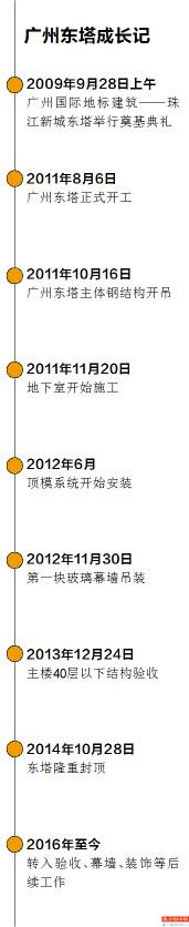 广州东塔是中国建筑系统内第一个承接、第一个动工、第一个封顶、第一个完工的超过500米的百层高楼。