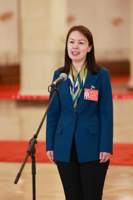 这是开幕会前,祖力亚提·司马义代表接受采访。
