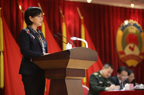 图片快讯:开幕大会,王亚平副主席作提案工作报告