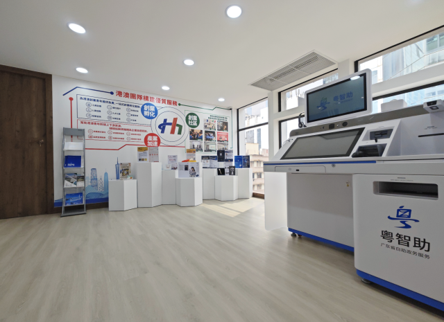 该柜台是香港首部融合政务和税务服务渠道的“湾区通办”柜台,内嵌广东政务服务网“粤智助”服务,全新集成政务服务和税务服务渠道,支持身份核验、资料传递、音视频互动、屏幕共享等多项功能,可实现申报纳税、发票业务、社保费业务、商事登记等超过500项政务及税费服务事项在香港地区无差别便捷化自助办理,推动粤港间高频业务跨境办理实现标准统一、双向互通。