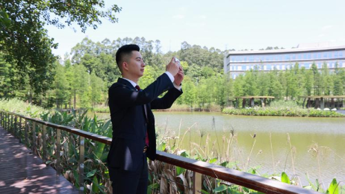 毕业于香港理工大学的余一鸣,现就职于基地项目广州市阿尔法软件信息技术有限公司的院士工作站。每天中午在基地食堂用餐后,她都会和同事一起在基地内聊天漫步:“基地环境优美,没有很浮躁的气氛,这里有湖、有树、让人内心平静,对于做科学研究类的工作很有帮助。”