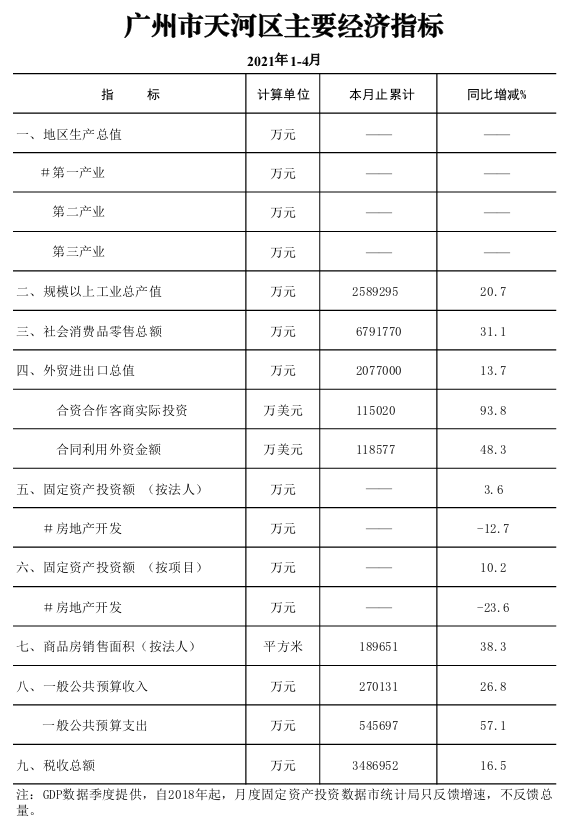 2021年1-4月威尼斯人平台主要经济指标