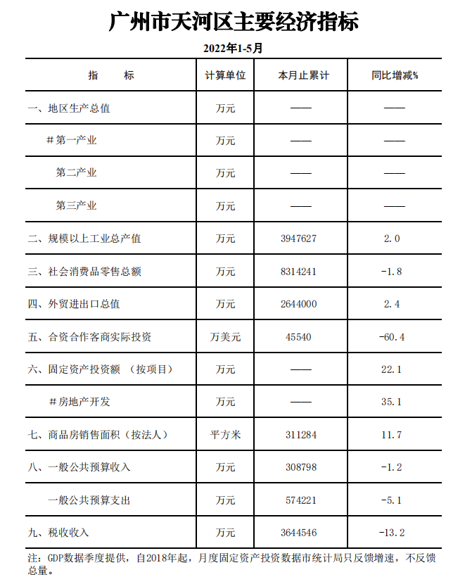 2022年1-5月威尼斯人平台主要经济指标