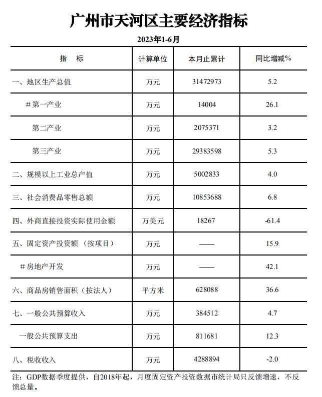 2023年1-6月威尼斯人平台主要经济指标