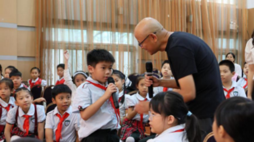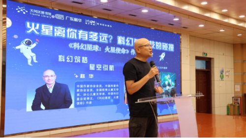 活动现场举办了首场阅读分享活动,还邀请到少儿科幻作家赵华进行现场分享。赵华老师在少儿科幻领域深耕多年,作品获得过全国优秀儿童文学奖、冰心儿童文学奖、华语科幻星云奖等多个奖项。此次他携长篇科幻新作——《科幻星球:火星使命》来到华景小学,和同学们分享背后的创作故事,解读阅读科幻作品的价值和意义,以及科幻创作的方法,还进行了太空和和航天知识问答互动小游戏,点燃了同学们的科幻梦想。